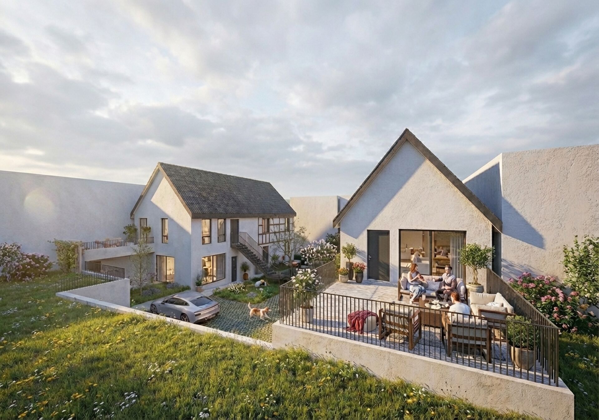 L'aménagement paysager ne décore pas : il structure l'espace, filtre les vues, améliore le confort thermique de cette construction traditionnelle réinventée.